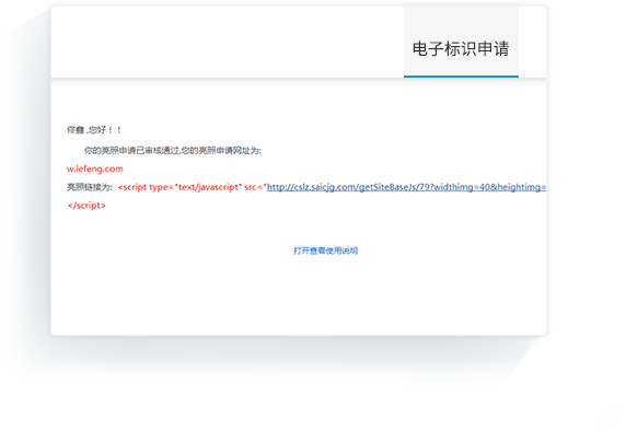 • 可按照郵件的使用說明,將電子標(biāo)識(shí)添加到網(wǎng)站首頁下方的醒目位置